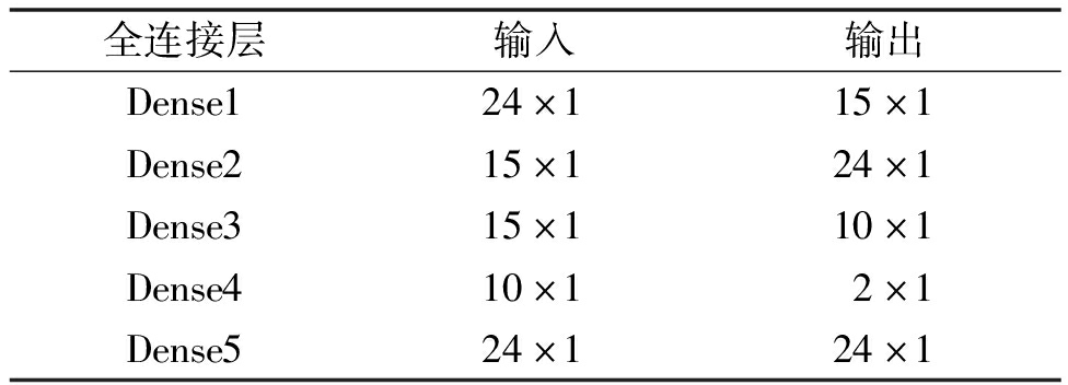 全连接层输入输出Dense124×115×1Dense215×124×1Dense315×110×1Dense410×12×1Dense524×124×1
