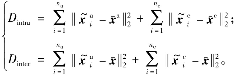 ,其中na和nc分别为ADHD患者人数和健康对照组人数,每个子集的类内距离Dintra和类间距离Dinter由式(1)计算: