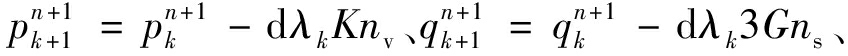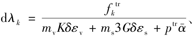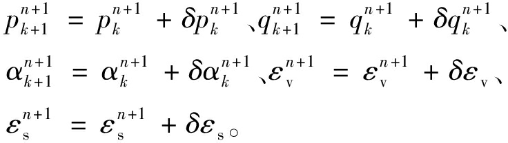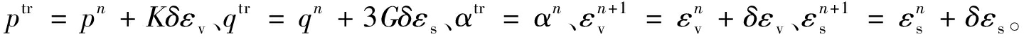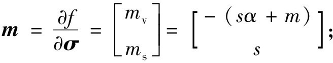 式(8)中f为屈服函数,f=(q-pα)-spm=0;mv为压缩相关的加载方向分量;ms为剪切相关的加载方向分量。