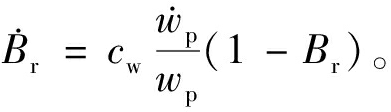 式中:ec为临界状态孔隙比;p为平均有效应力;f(Br)为考虑颗粒破碎的影响性函数;λ为临界状态线参数;大气压强Pa=101 kPa;当Br =0时,f(Br)=1,当Br>0时,f(Br)<1。为了建模的方便,通常可以采用f(Br)=1-Br。应力和应变的变化均会导致颗粒破碎发生,因此,Daouadji等[13]和Liu等[14]提出采用塑性功wp的变化来标定加载过程中Br的演化: