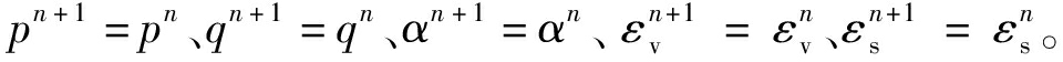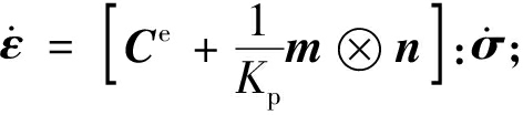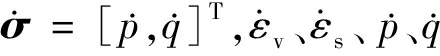 分别为体变增量、剪应变增量、平均有效应力增量、偏剪应力增量;Ce、Kp、m、n分别为弹性柔度矩阵、塑性模量、塑性加载张量、塑性流动张量。