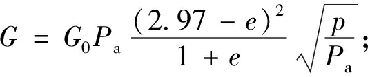 式中:G0为弹性参数;e为孔隙比;ν为泊松比。