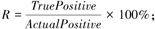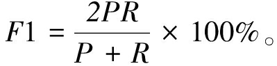 实验以召回率R、精确率P及F1值作为评价标准,用于评估模型的性能,对应计算公式见式(12)~式(14):