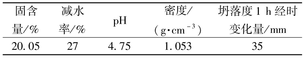 固含量/%减水率/%pH密度/(g·cm-3)坍落度1h经时变化量/mm20.05274.751.05335
