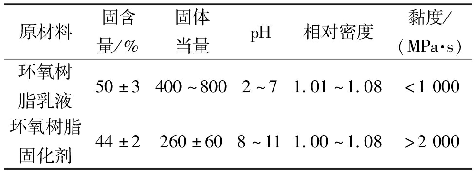 Table 1 Main technical parameters of epoxy resin emulsion and curing agent