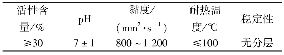活性含量/%pH黏度/(mm2·s-1)耐热温度/℃稳定性≥307±1800~1200≤100无分层