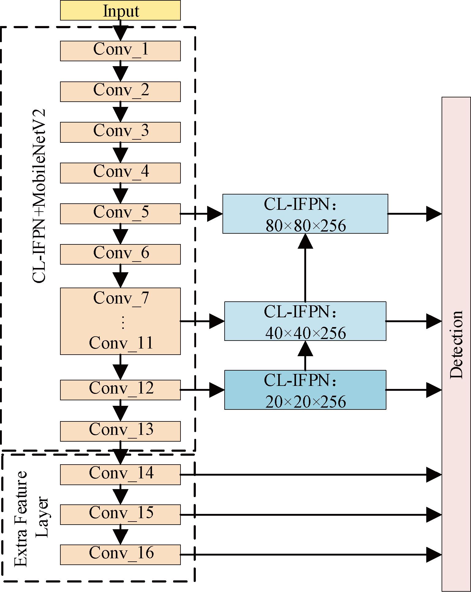 Figure 1 CL-IFPN+MobileNetV2-SSD structure