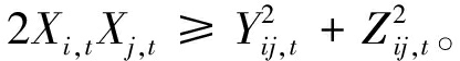 最后,引入非线性二阶旋转锥约束条件,使得优化模型在尖凸锥的约束范围内: