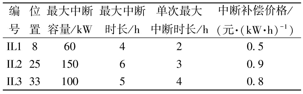 编号位置最大中断容量/kW最大中断时长/h单次最大中断时长/h中断补偿价格/(元·(kW·h)-1)IL1860420.5IL225150630.9IL333100540.8