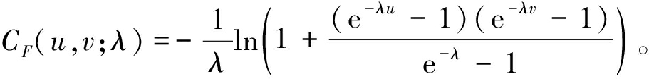 式中:u=F(xn);v=F(yn);λ为相关参数且λ≠0,λ>0 表示u、v正相关,λ趋近于0表示u、v趋于独立,λ<0表示u、v 负相关。
