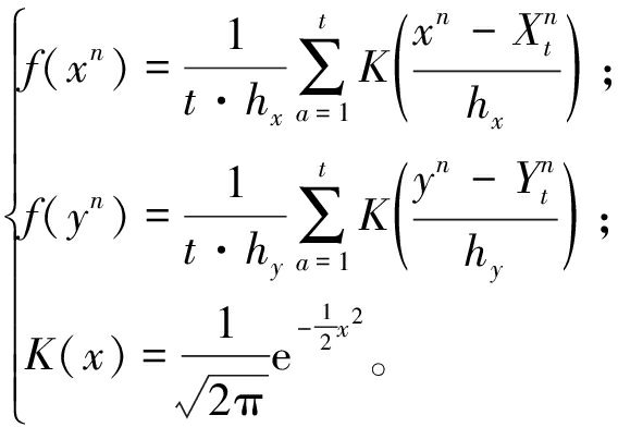 分别表示风、光在第t天n时的出力值;K为高斯核函数;h为窗宽,风电窗宽hx 取0.002,光伏窗宽hy 取0.01[20]。
