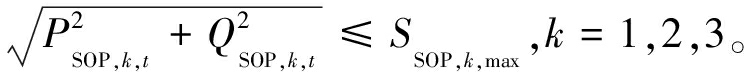 配电网运行时,SOP端口应满足如下容量约束: