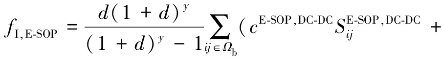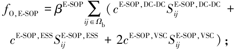 式中:fI,E-SOP、fO,E-SOP分别为E-SOP年投资、维护成本;fL为配电网年运行成本;Ωb为系统支路的集合;d为贴现率;y为E-SOP的经济使用年限;cE-SOP, DC-DC、cE-SOP, ESS和cE-SOP, VSC分别为DC-DC转换器单位容量投资成本、ESS单位容量投资成本和VSC单位容量投资成本;