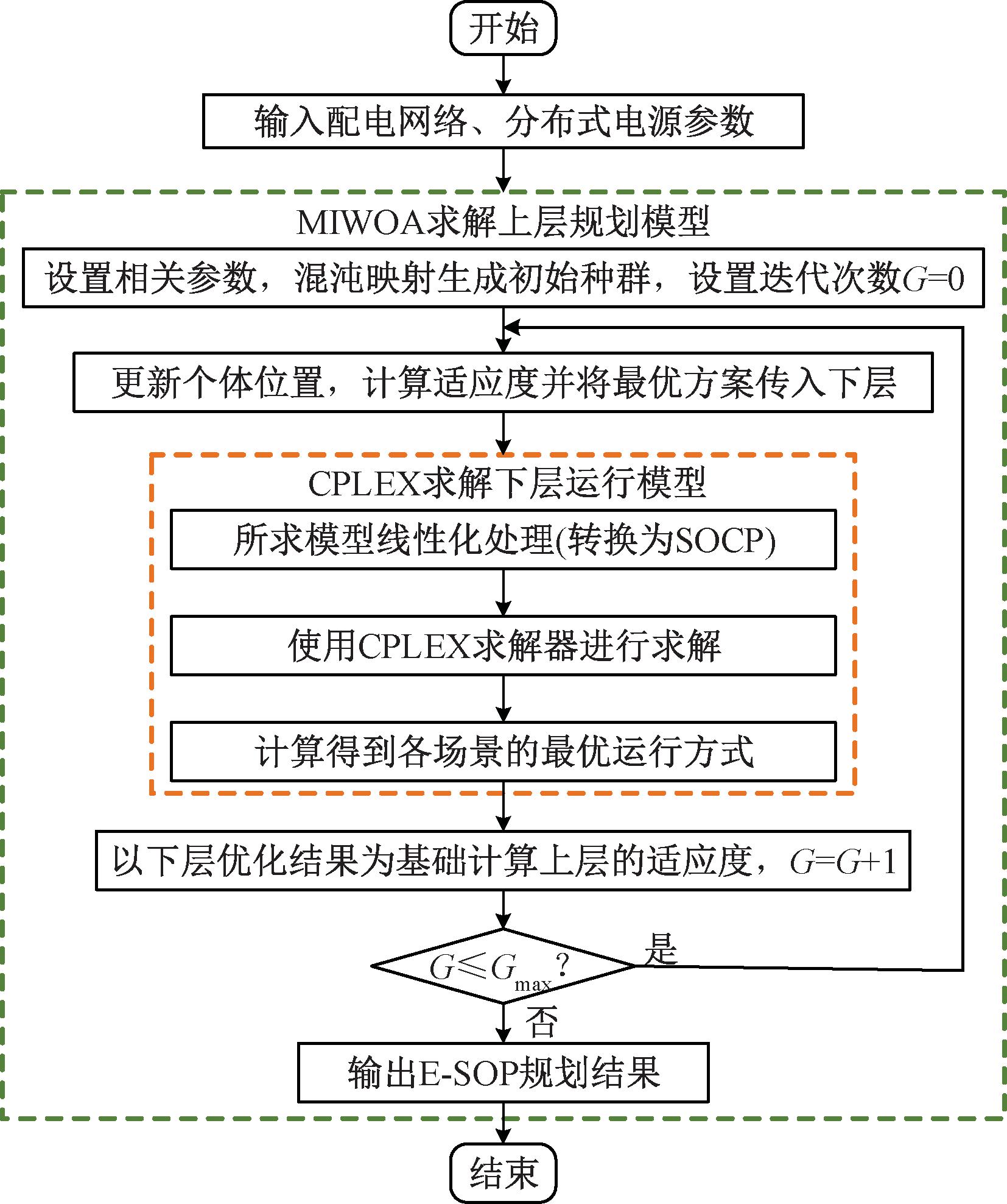 双层规划属于大规模混合整数非线性规划问题,利用MIWOA和SOCP混合算法进行求解。