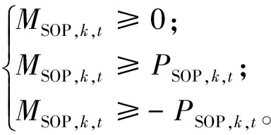 针对E-SOP损耗中含有的绝对值项,引入辅助变量MSOP, k, t替代|PSOP, k, t|,并补充如下约束: