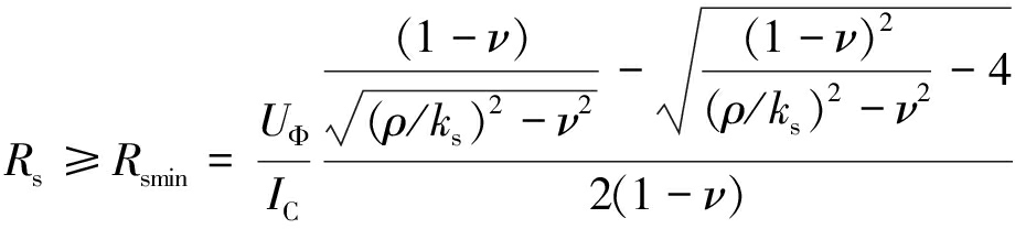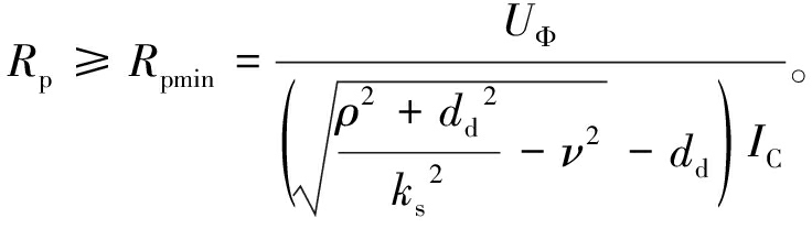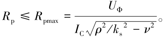 (4)当系统发生阻值为RF的单相接地故障时,以中性点位移电压越限为条件,计算Rsmax与Rpmin。