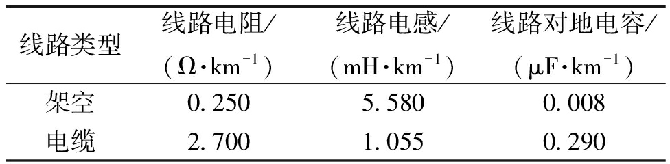 线路类型线路电阻/(Ω·km-1)线路电感/(mH·km-1)线路对地电容/(μF·km-1)架空0.2505.5800.008电缆2.7001.0550.290