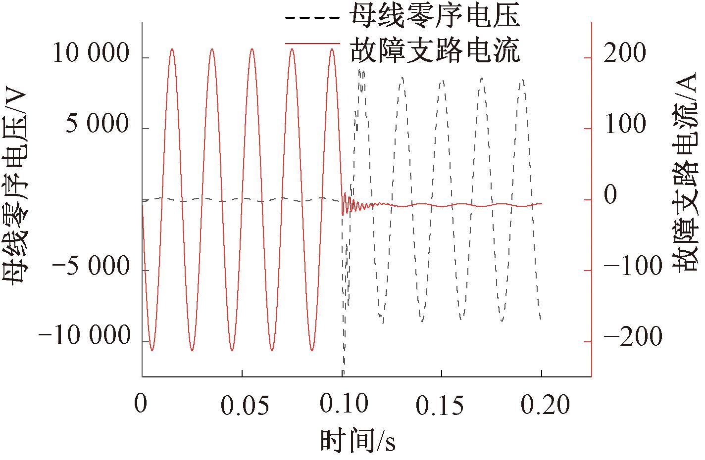 Figure 10 Busbar zero-sequence voltage and faulted branch current waveform diagram