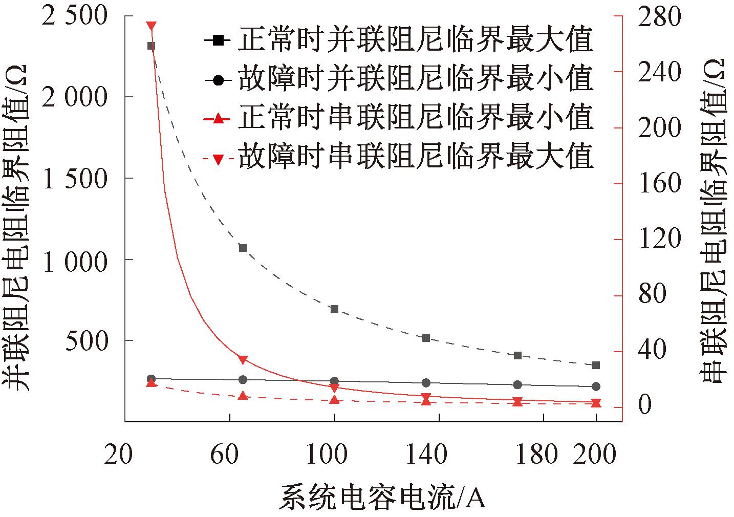 Figure 5 Relationship between the critical resistance of damping resistance and system capacitance current