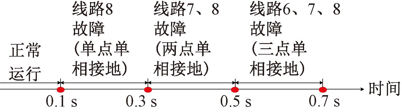 为验证所提方法在多点时序性单相短路故障下的有效性,设置系统依次发生单点、两点、三点单相1 500 Ω接地故障,故障发生时序如图12所示。