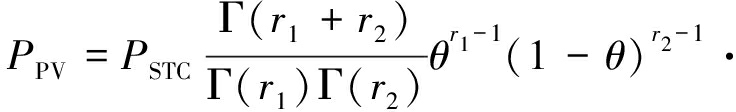 式中:Γ表示伽马函数;PSTC为标准测试条件下的额定功率;r1和r2为两个反映日照强度分布偏斜程度的可调形状参数(调节不确定性);θ=G/Gmax为归一化的太阳辐照度,G为实际太阳辐照度,Gmax 为该时段的最大辐照度;kT为功率温度系数(通常为负值,表示温度升高功率下降);T和TSTC分别为当前光伏组件工作温度和标准测试温度。