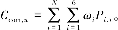 式中:i取 1,2,…,6分别代表热泵、风机、光伏、燃气轮机、燃气锅炉、余热锅炉;ωi为设备i的运维系数;Pi,t为设备i的出力。