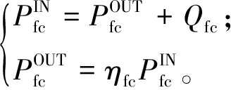 分别表示电堆(由多个电池组成)输入总功率和输出电功率;Qfc表示电堆吸热功率和电堆空气散热损失热能;ηfc为氢燃料电池发电效率。