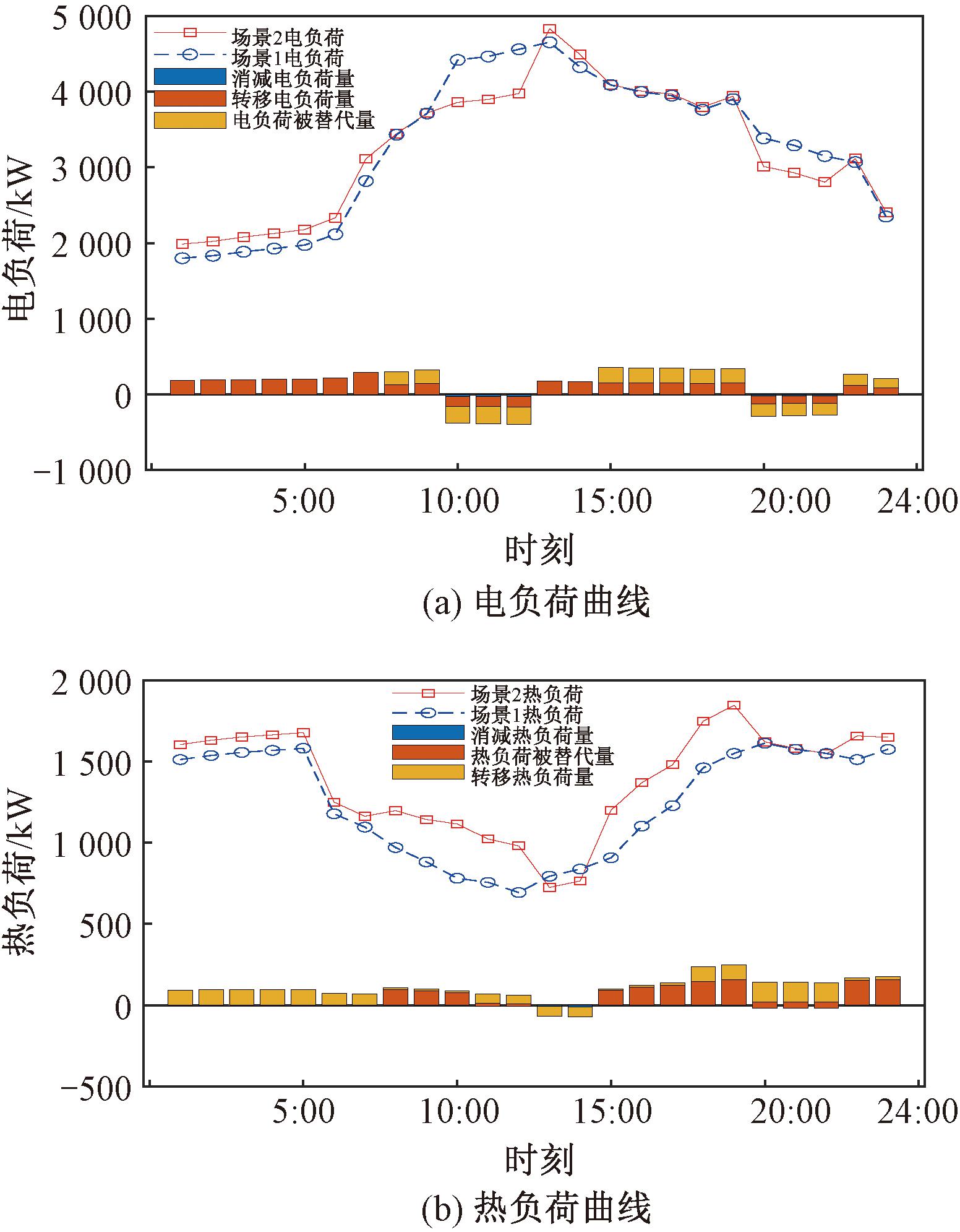 图7 场景1和场景2的电热负荷曲线对比