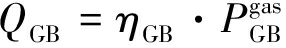 式中:QGB表示燃气锅炉热功率;ηGB为燃气锅炉制热效率;