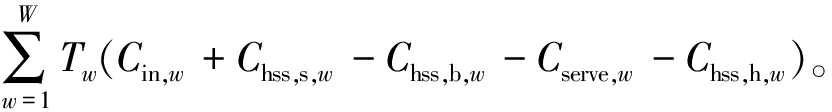 式中:Chss,b,w、Chss,s,w、Cin,w分别为氢储能电站向微网售电的费用、从微网购电的费用,以及运行和维护成本;Cserve,w为微网向氢储能电站缴纳的服务费用;Chss,h,w为氢储能电站卖出热能的收益;W为典型日;Tw为第w个典型日对应天数,设定为91。