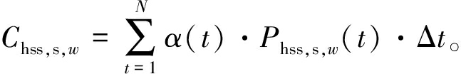 式中:α(t)、Phss,s,w分别为t时刻氢储能电站从微网购电电价和购电功率;Δt为调度时段划分。