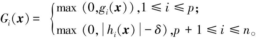 为了计算等式约束的违反度,首先,一般通过松弛参数δ将等式约束转换为不等式约束[14]: