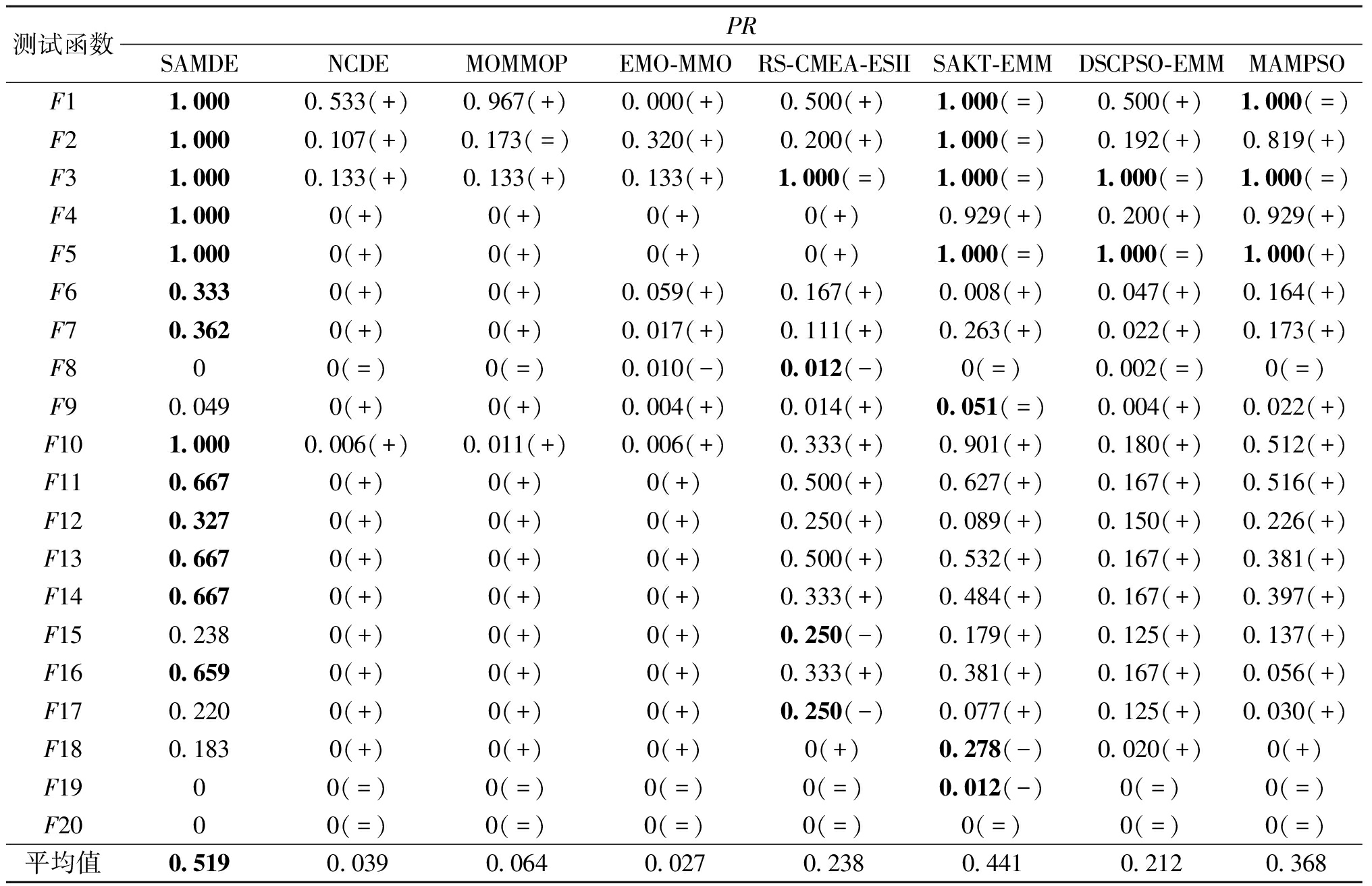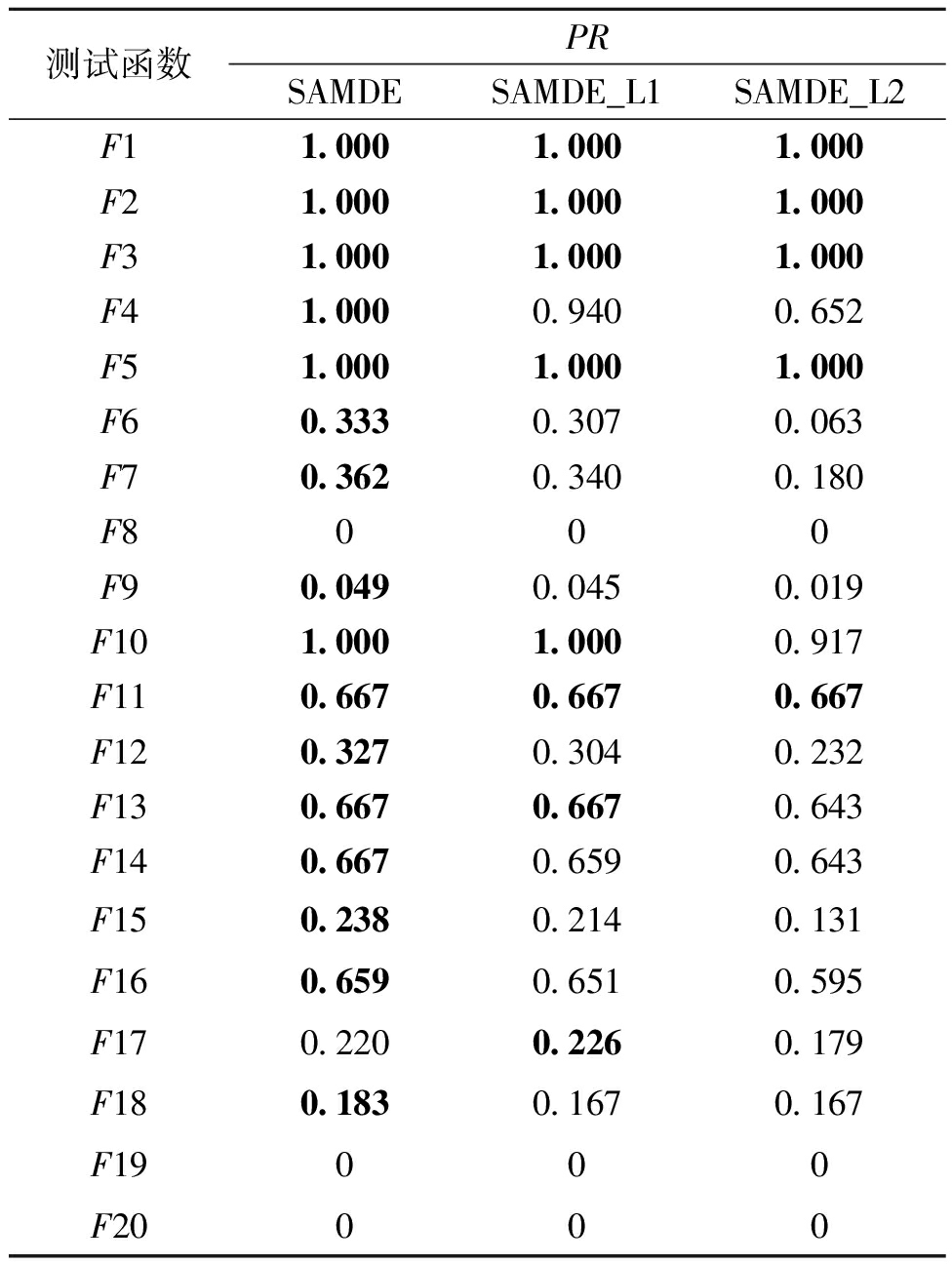 表3 SAMDE及其变体的PR值