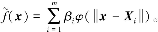 式中:βi为对应基向量的权重系数;m表示训练数据的个数;φ(·)表示基函数。常见的基函数有线性函数、三次函数以及高斯函数等。本文选取三次函数作为基函数,即φ(·)=r3。