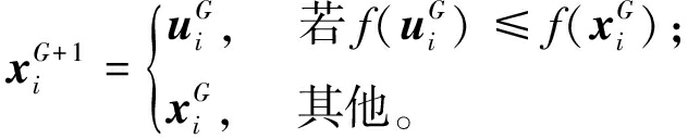 式中:j=1,2,…,D;randj为[0,1]的随机数;Cr为交叉概率;k为1~D的均匀生成的随机整数。