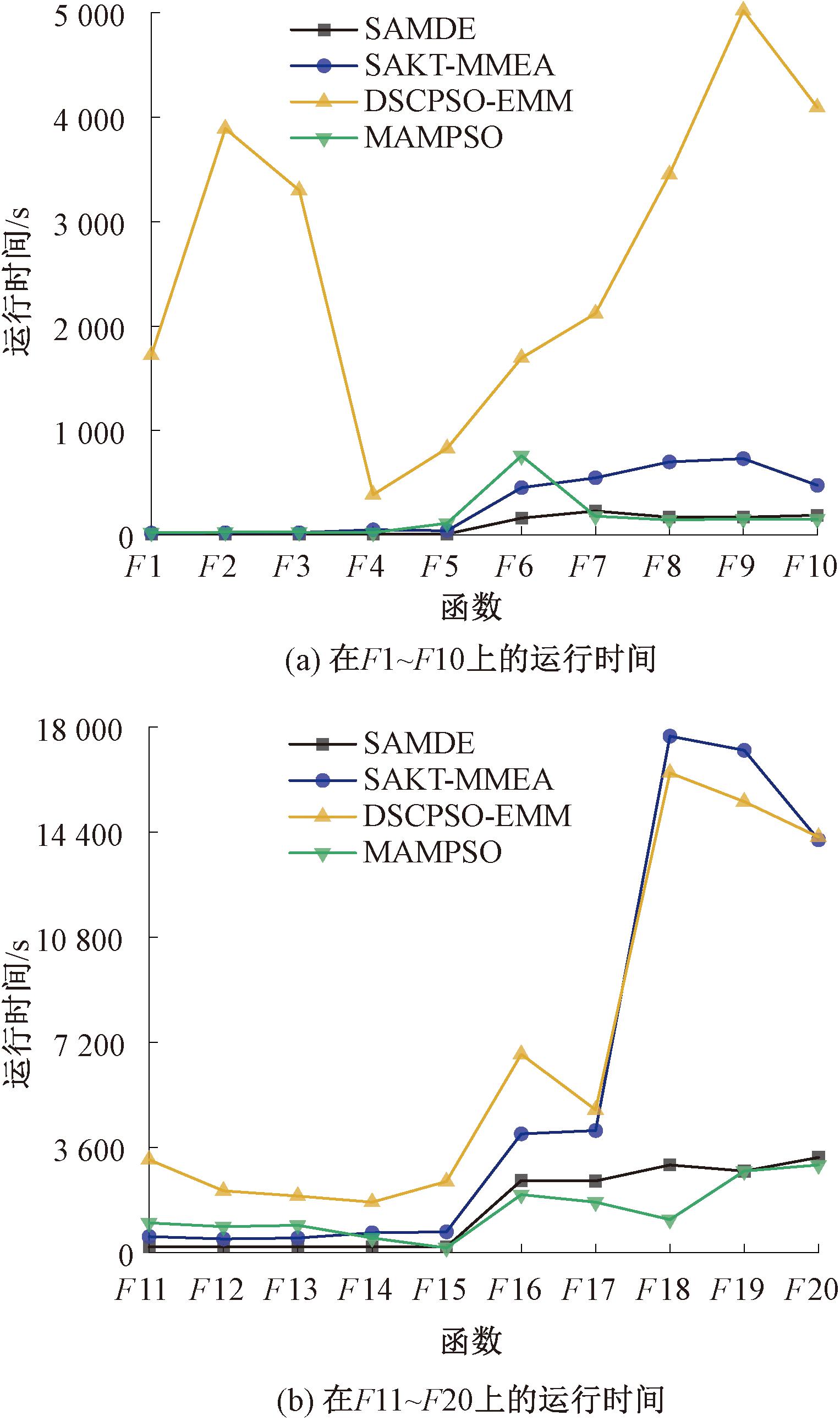 图5 SAMDE及其对比算法运行时间折线图
